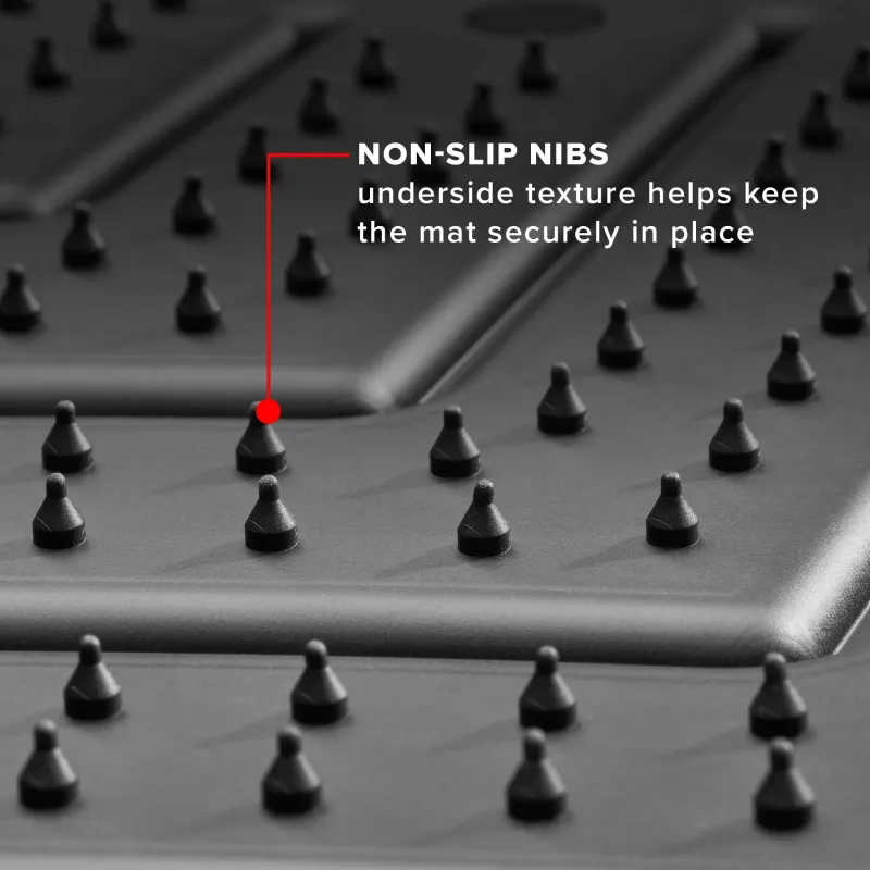 Коврики HP изготовлены с использованием усовершенствованного резиноподобного термопластичного эластомера (TPE), что делает их одновременно мягкими и прочными. Спроектированы и созданы для того, чтобы выдерживать самые экстремальные погодные условия, они не трескаются, не скручиваются и не ломаются. Этот материал также на 100% пригоден для вторичной переработки и не содержит латекса и ПВХ!
